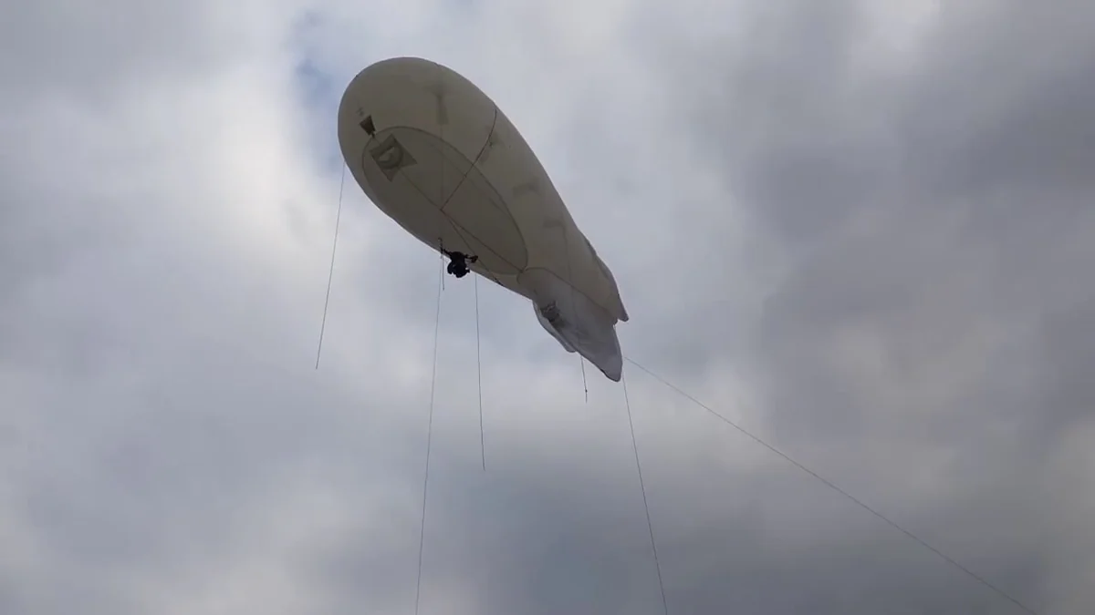 Это — комплекс высотного видеонаблюдения «ОКО». Аэростат ведет видеонаблюдение в реальном времени и передает изображение на экран оператора мобильного комплекса.