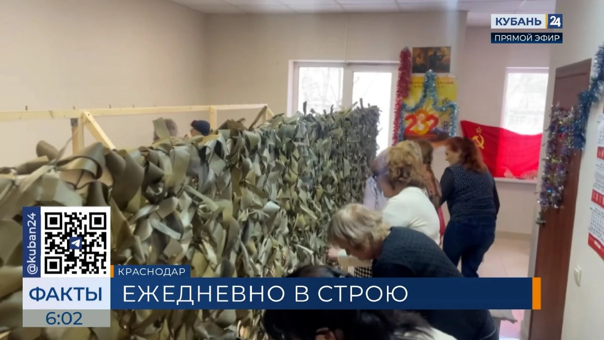 Добровольцы из Краснодара праздничные выходные посвятили плетению сетей для фронта.