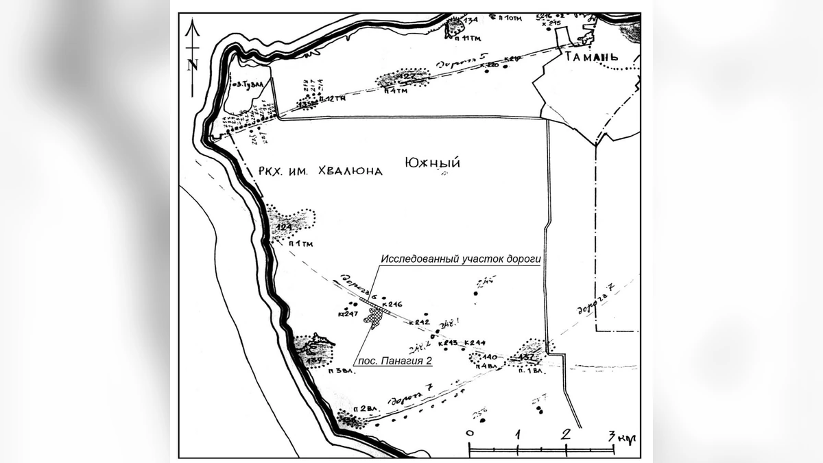 «Его расположение полностью совпало с намеченной ранее по данным аэрофото- и космоснимков трассой древней дороги, что подтвердило перспективность использования этих методов в изучении инфраструктуры полуострова и достоверность полученных результатов. Характер рельефа, говорящий об использовании дороги, ведущей к древней переправе через Керченский пролив в качестве скотопрогонной трассы, позволяет предположить регулярный (сезонный?) перегон стад между Таманским и Крымским полуостровами», — цитирует Раева пресс-служба ЮНЦ РАН.