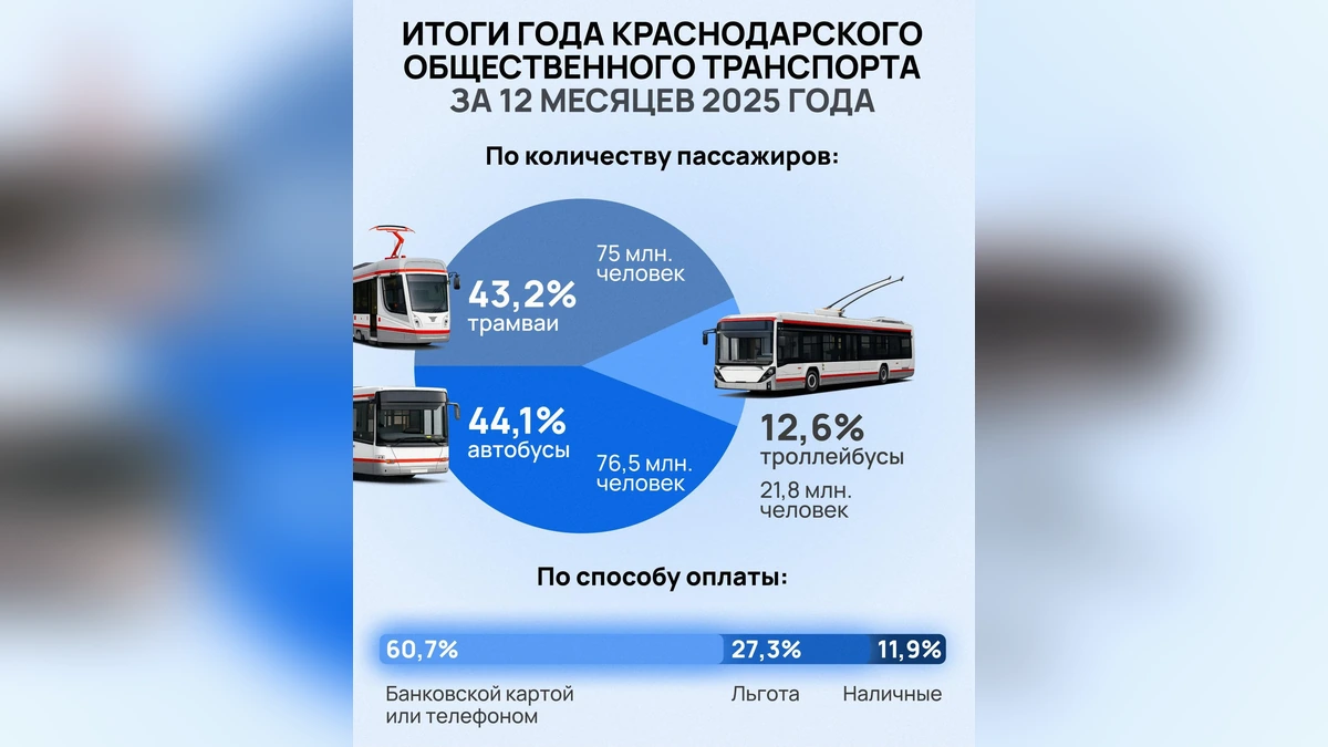 Более 173,4 млн поездок совершили за год на общественном транспорте Краснодара