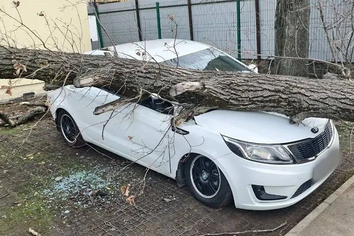 Четыре иномарки пострадали из-за падения дерева в Краснодаре