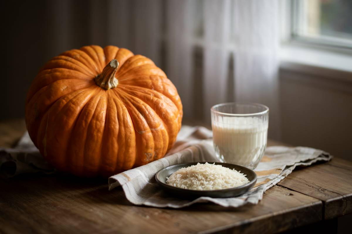 Собираем вместе тыкву и рис в кастрюле. Заливаем молоком. Добавляем сахар и щепотку соли (для усиления вкуса). Доводим до кипения.