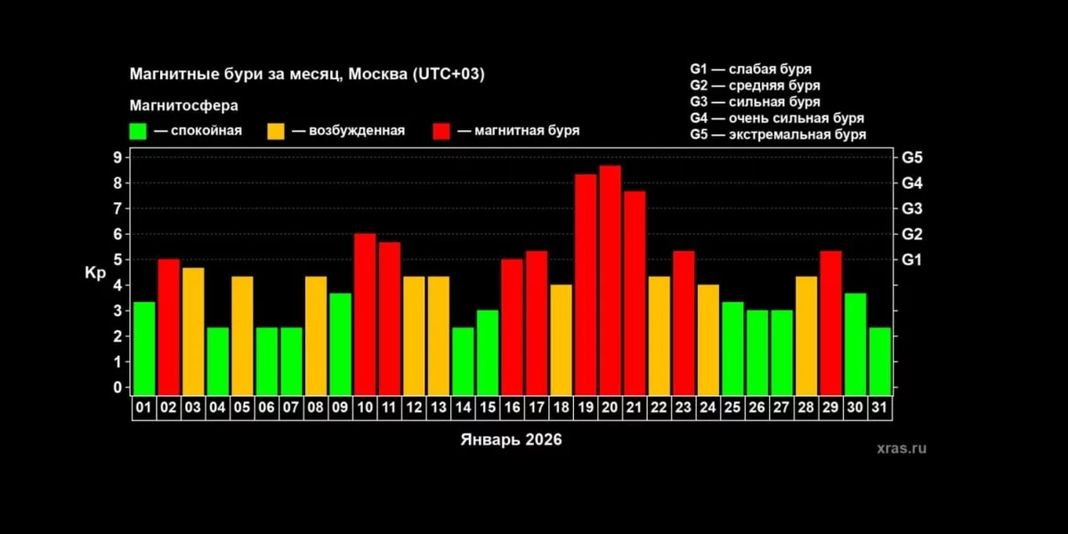 По данным ученых, число дней с магнитными бурями в прошедшем январе стало максимальным с 2017 года — 10 из 31. Это подтверждает ожидания, что 2026 год станет самым геомагнитно активным как минимум за десятилетие, заявили исследователи.