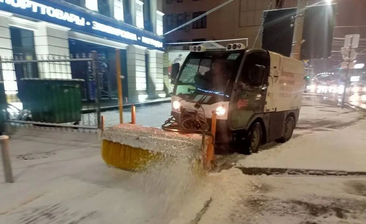 После ночного снегопада в краевом центре 27 декабря очищают дороги и тротуары, обрабатывают от гололеда.