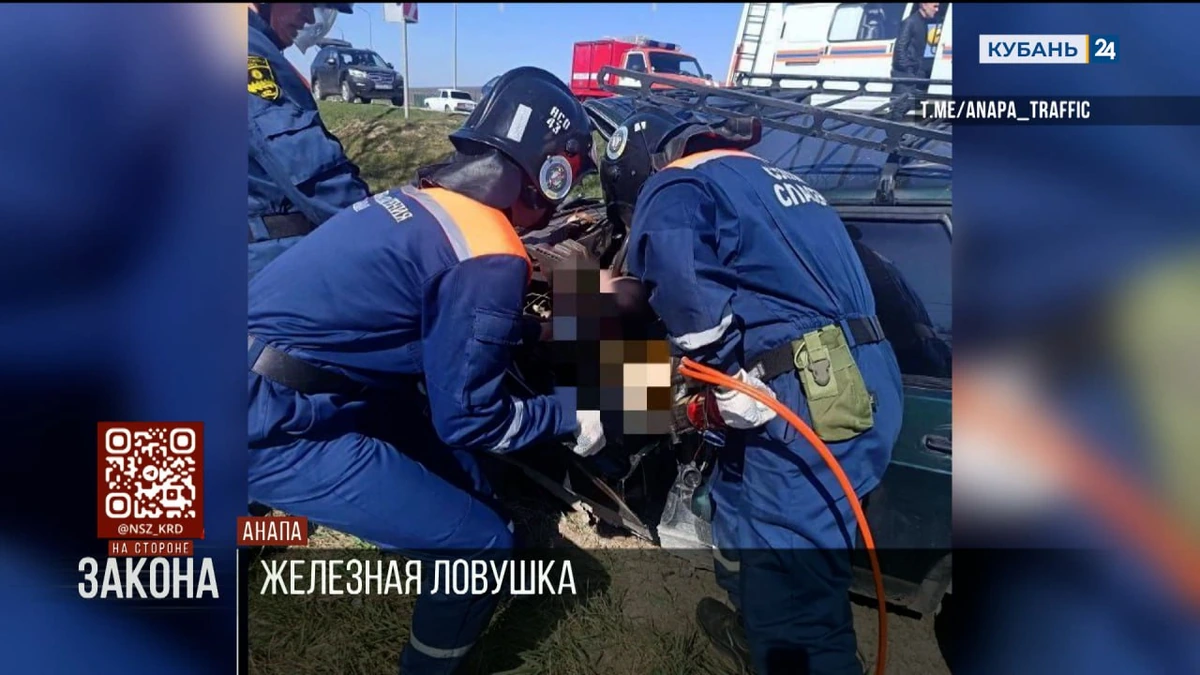 Два человека застряли в искореженной после ДТП легковушке в Анапе