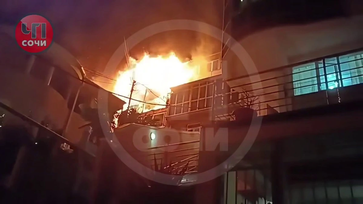 Двухэтажный частный дом загорелся в Сочи, огонь охватил 350 кв. метров