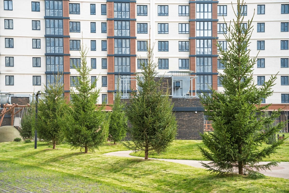 Конец осени стал для DOGMA особенно экологичным: не так давно в ЖК «Самолет» посадили семиметровую бельгийскую пихту, а после заложили аллею из плодовых деревьев.