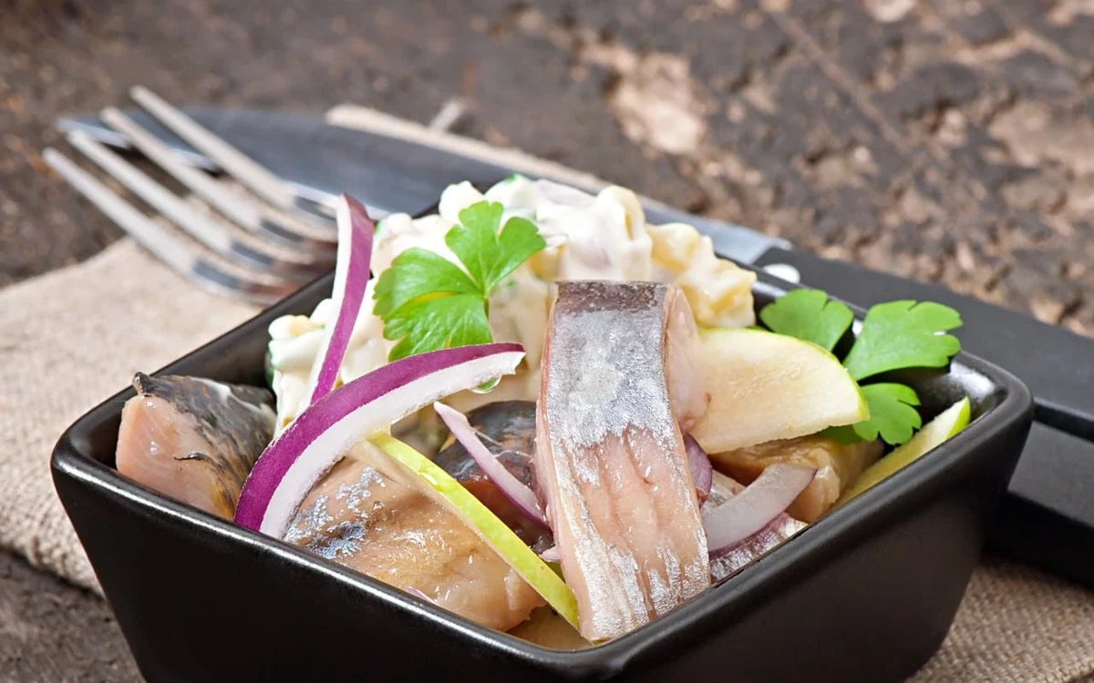 Закуска с не самым благозвучным для русского слуха названием и составом, в котором подружились селедка, молоко и яблоки, — не частый гость на наших столах. А зря.