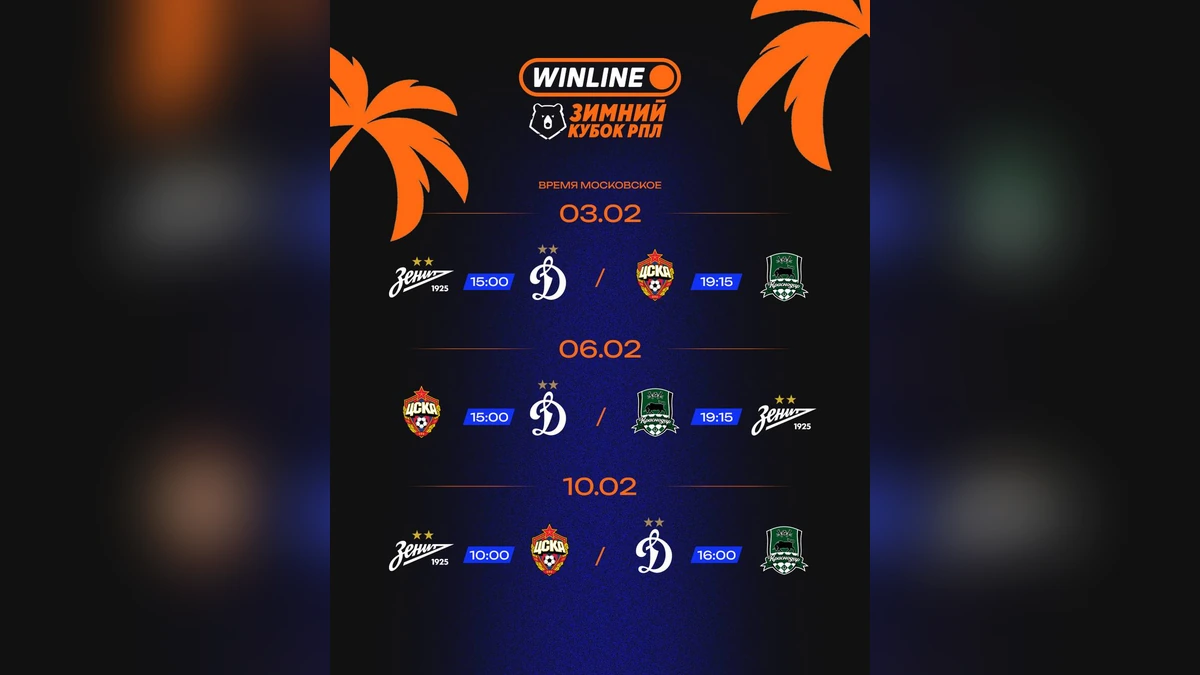 Первые игры кубка пройдут 3 февраля. В 15:00 на поле встретятся «Зенит» и «Динамо». В 19:45 начнется матч между «Краснодаром» и ЦСКА.