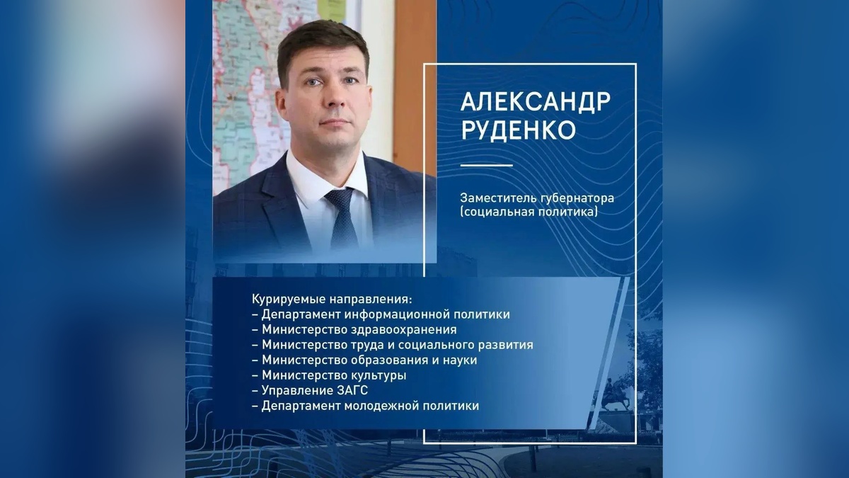 Заместителем губернатора по социальным вопросам назначен Александр Руденко. Ему 42 года, окончил факультет журналистики Кубанского государственного университета. С 2005 года работал по специальности на различных должностях в ГТРК «Кубань» в Сочи и Краснодаре. С 2021 года стал заместителем, а в последующем и директором медиагруппы «Кубань 24». Семейное положение: воспитывает троих детей.