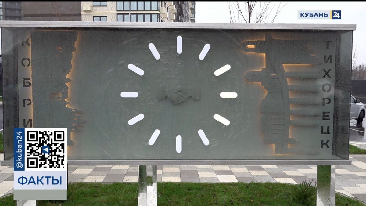 Новый арт-объект, который символизирует 25-летие сотрудничества между Тихорецком и белорусским Кобриным, — это совместный проект администрации Тихорецка и ГК «ТОЧНО». Инсталляцию установили на бульваре, прилегающем к ЖК «Высочество» — первому проекту комфорт-класса и самому высокому зданию Тихорецка, где ранее прошла торжественная церемония открытия. Композиция имитирует течение времени — соединяет рельефы городов-побратимов.