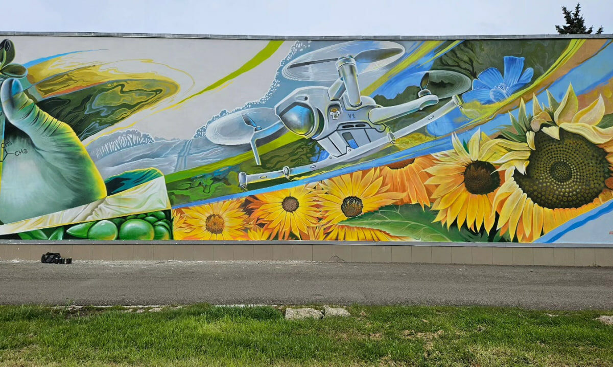 Известный краснодарский художник Георгий Куринов реконструировал свою работу пятилетней давности на здании Всероссийского НИИ масличных культур им. В. С. Пустовойта.