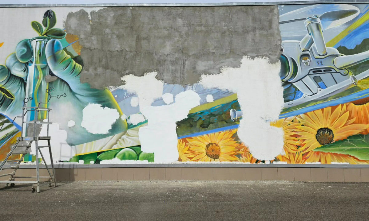 GOOZE ART восстановил испорченный из-за штукатурки мурал во ВНИИМК в Краснодаре