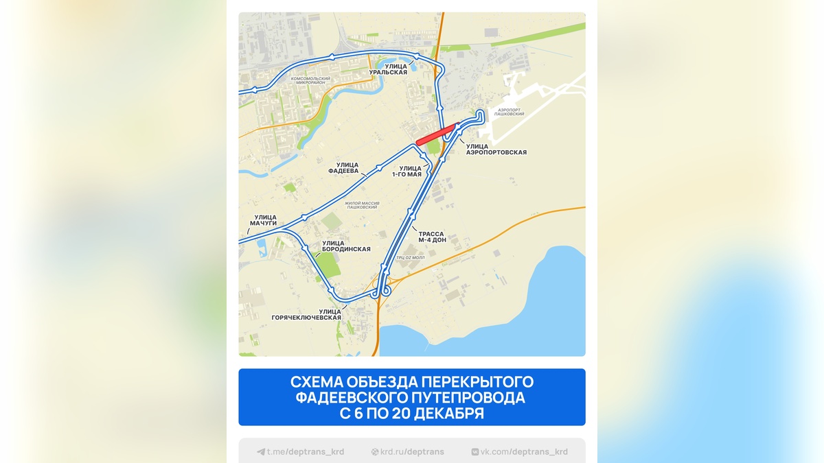 Как изменится схема движения из-за закрытия Фадеевского путепровода в Краснодаре