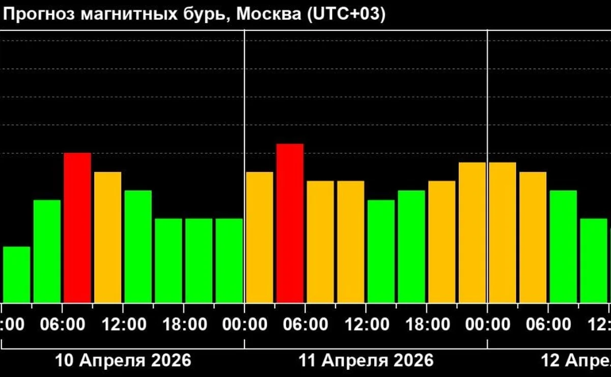 Модели показывают высокую вероятность слабых магнитных бурь и возмущений на предстоящие трое суток — с пятницы по воскресенье. Ожидается, что буря произойдет в субботу с 3:00 до 6:00.