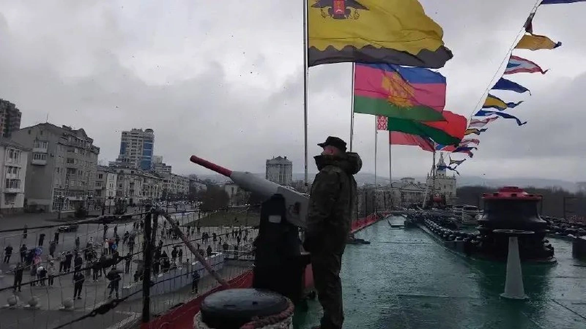 Крейсер «Михаил Кутузов» в Новороссийске дал памятный залп