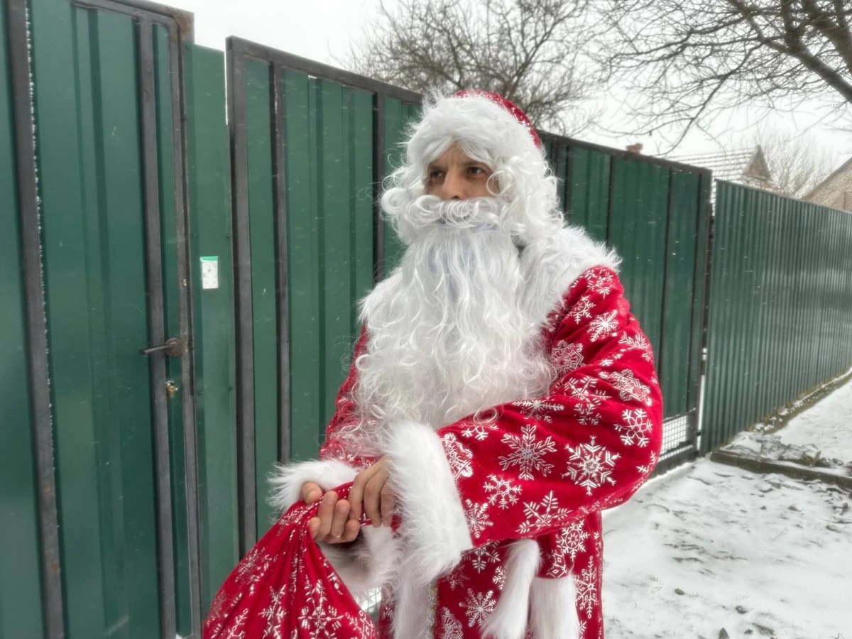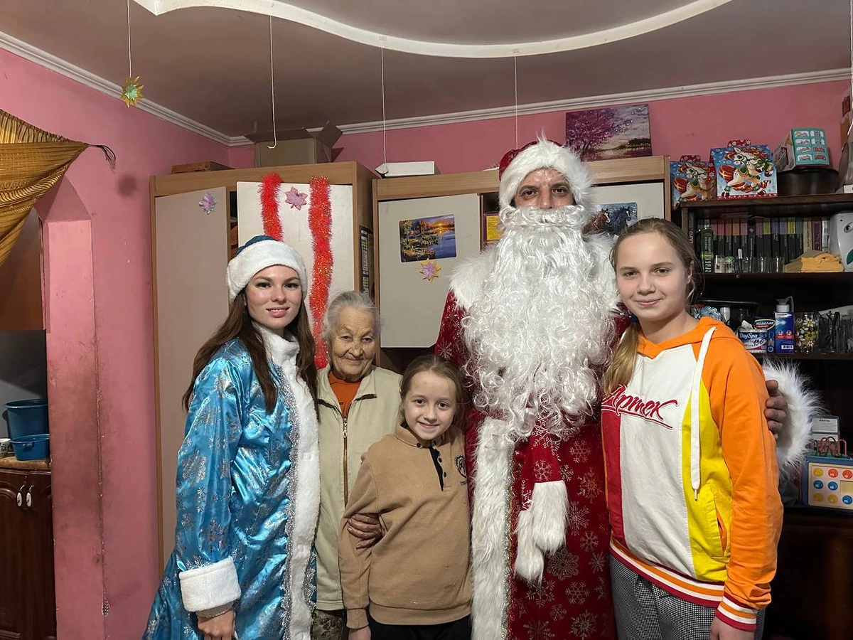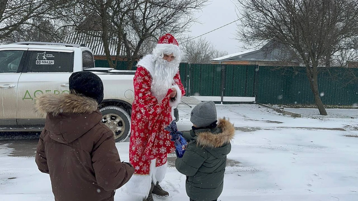 Волонтеры кубанского благотворительного фонда «Добро и Дело» в костюмах Деда Мороза и Снегурочки поздравили с наступающим Новым годом более 30 детей в прифронтовых селах, а также бойцов спецоперации.
