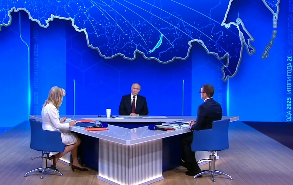 Скриншот прямого эфира программы «Итоги года с Владимиром Путиным»