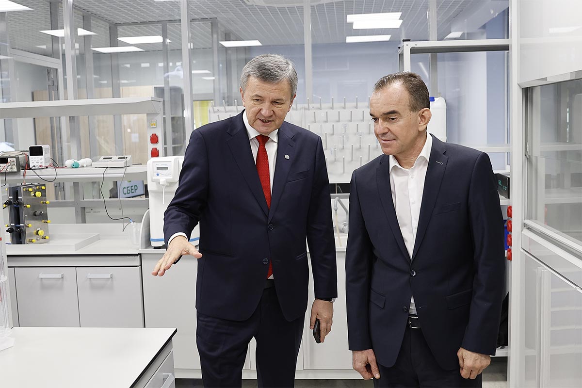 Разработка и изготовление установок для получения водорода из природного газа, метана, аммиака, спиртов и дизельного топлива — сейчас это основное направление работы НИИ водородной энергетики Кубанского госуниверситета. Посмотреть исследовательские площадки вуза приехал губернатор Вениамин Кондратьев. Главе региона показали студенческие лаборатории водородной энергетики, современные литиевые технологии и центры искусственного интеллекта и интеллектуальных систем.