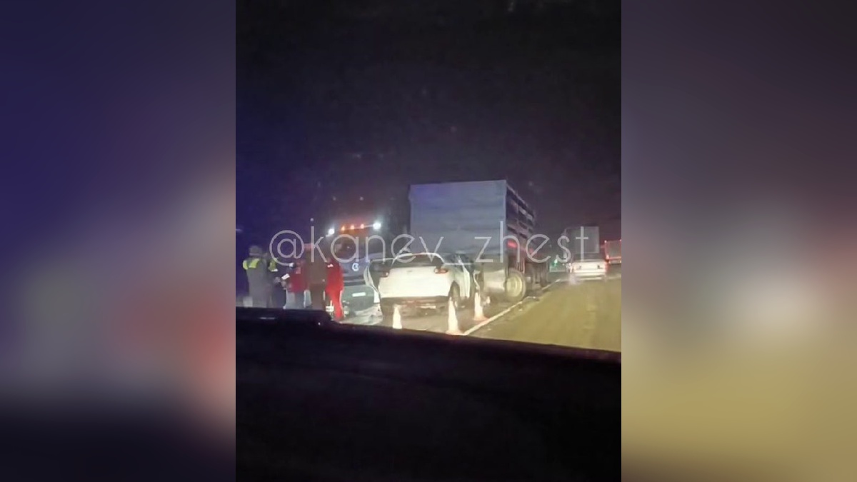 Видеозапись с места происшествия выложили в соцсети очевидцы. На кадрах виден легковой автомобиль, въехавший под КамАЗ.
