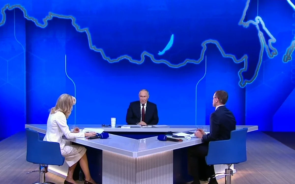 Скриншот прямого эфира программы «Итоги года с Владимиром Путиным»