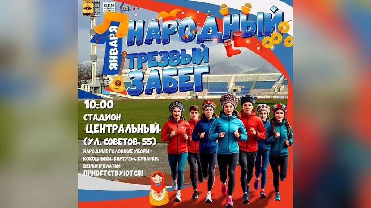 Старт забега в 10:00 1 января 2026 года на стадионе «Центральный» на улице Советов, 55.