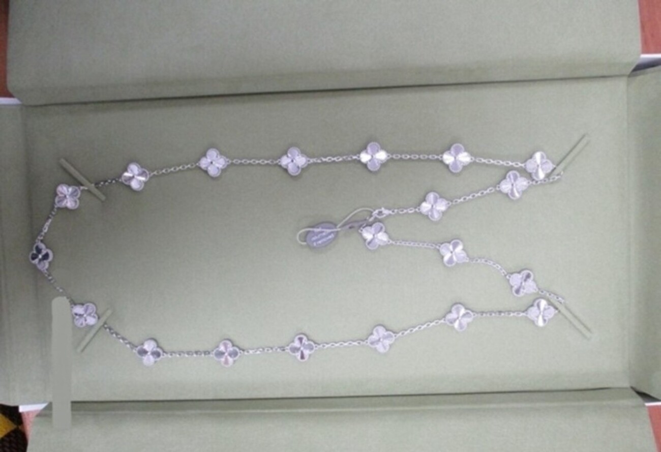 Однако при прохождении таможенного контроля при помощи рентгентехники в рюкзаке женщины обнаружили серьги и колье в виде четырехлистного клевера с гравировкой Van Cleef. Украшения находились в фирменных футлярах и коробках зеленого цвета.
