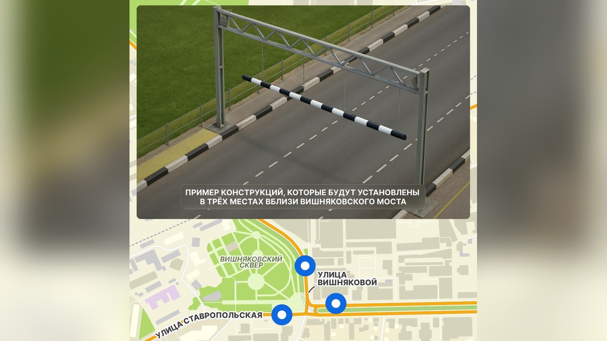 До конца года вблизи моста установят три физических ограничителя высоты — два на улице Ставропольской и один на Вишняковой за 200 м до моста.