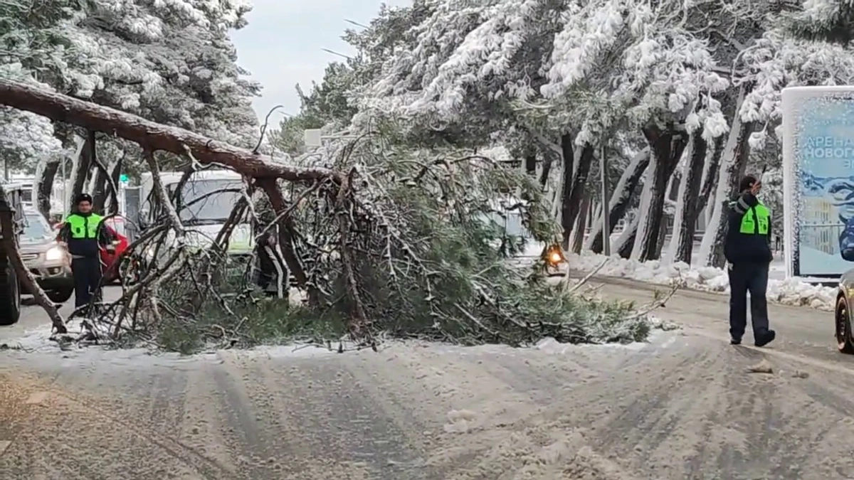 Снегопад обрушился на город-курорт 16 января. Дороги замело, на проспекте Геленджикском на проезжую часть рухнули ветки, в селе Пшада произошло аварийное отключение электричества.