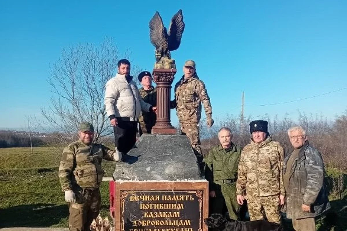 На гранитном постаменте установили колонну с фигурой орла. На памятной доске выгравировали надпись «Вечная память погибшим казакам-добровольцам бригады «Кубань».