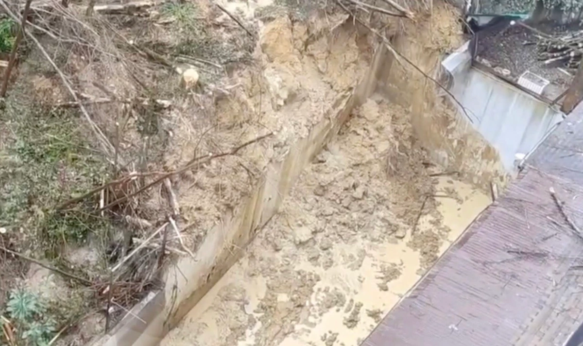 На опубликованных кадрах видно, что сток воды по оползневому склону усилился. В выходные дни в Сочи прошли дожди.