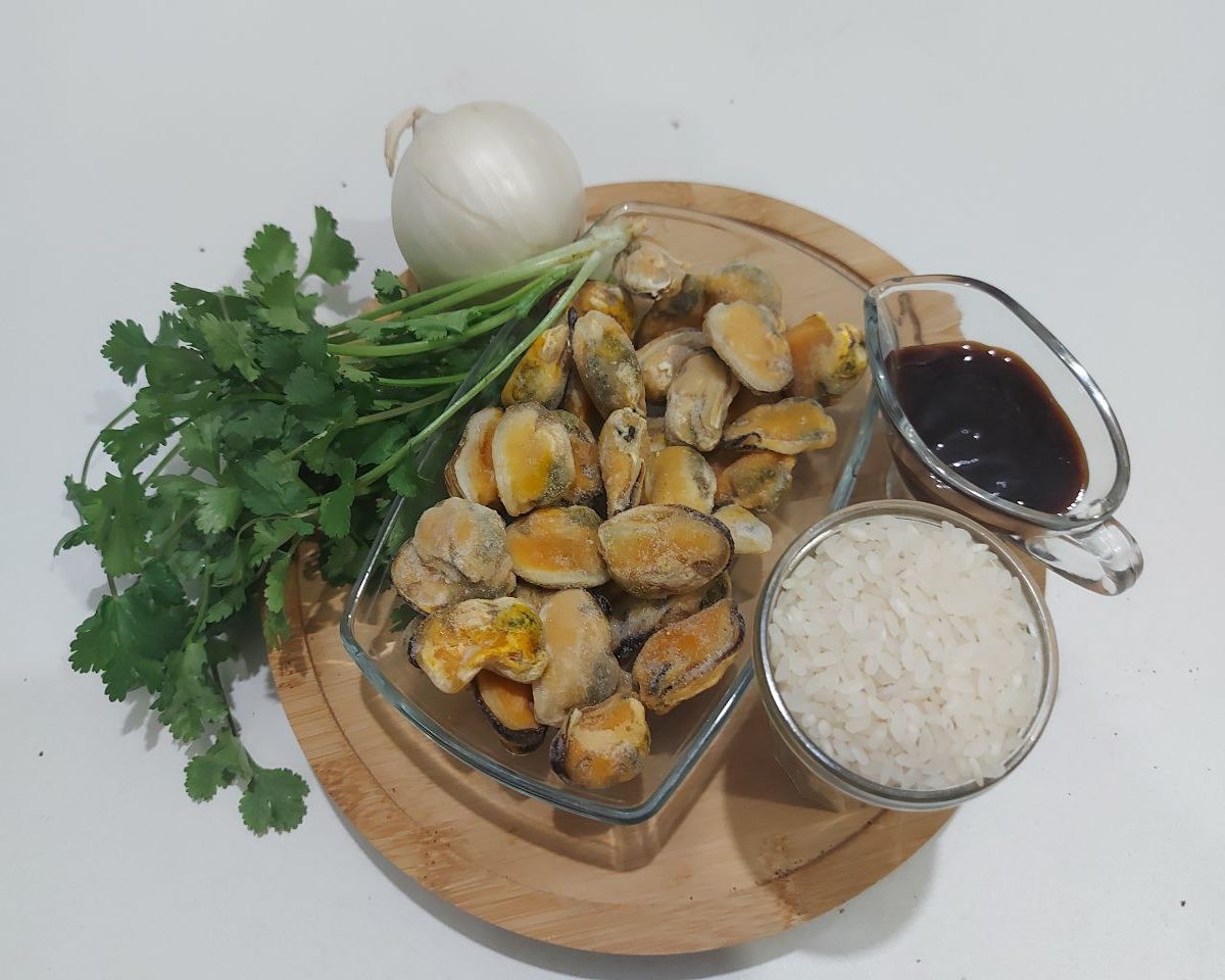 Количество риса и мидий может быть произвольным. Если риса будет больше — готовим рис с мидиями, если больше мидий — мидии с рисом.
