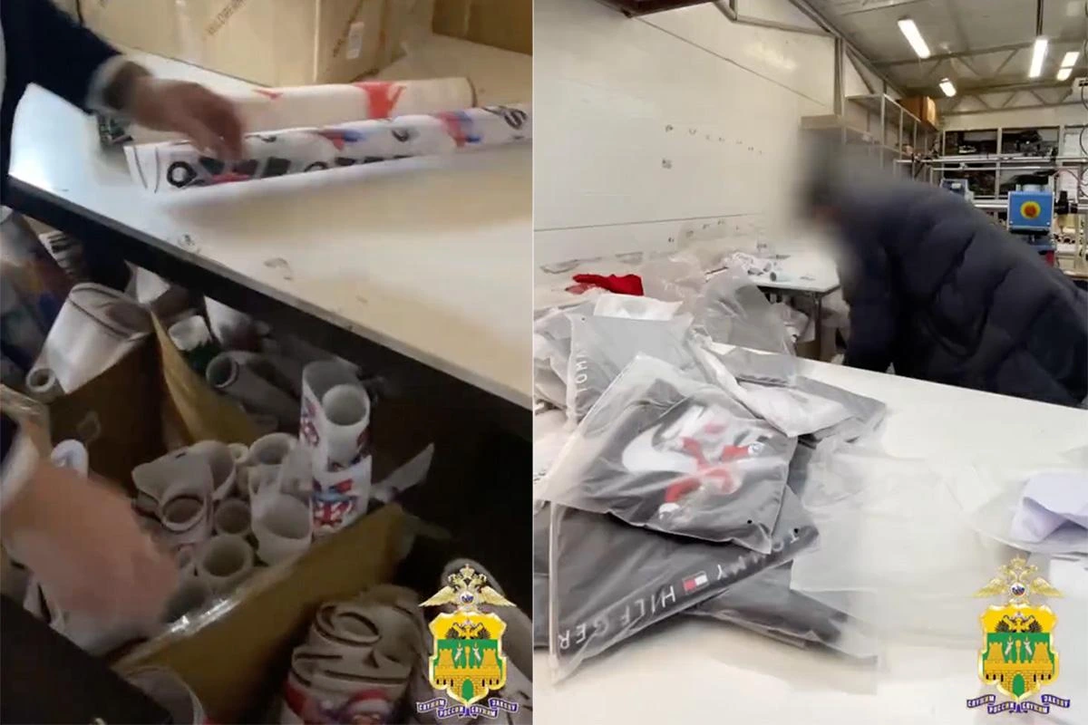 Полиция Кубани опубликовала видео из подпольного цеха. На кадрах видно, что на футболки наносили принты с изображением логотипов спортивных брендов Nike и Adidas, а также Tommy Hilfiger.