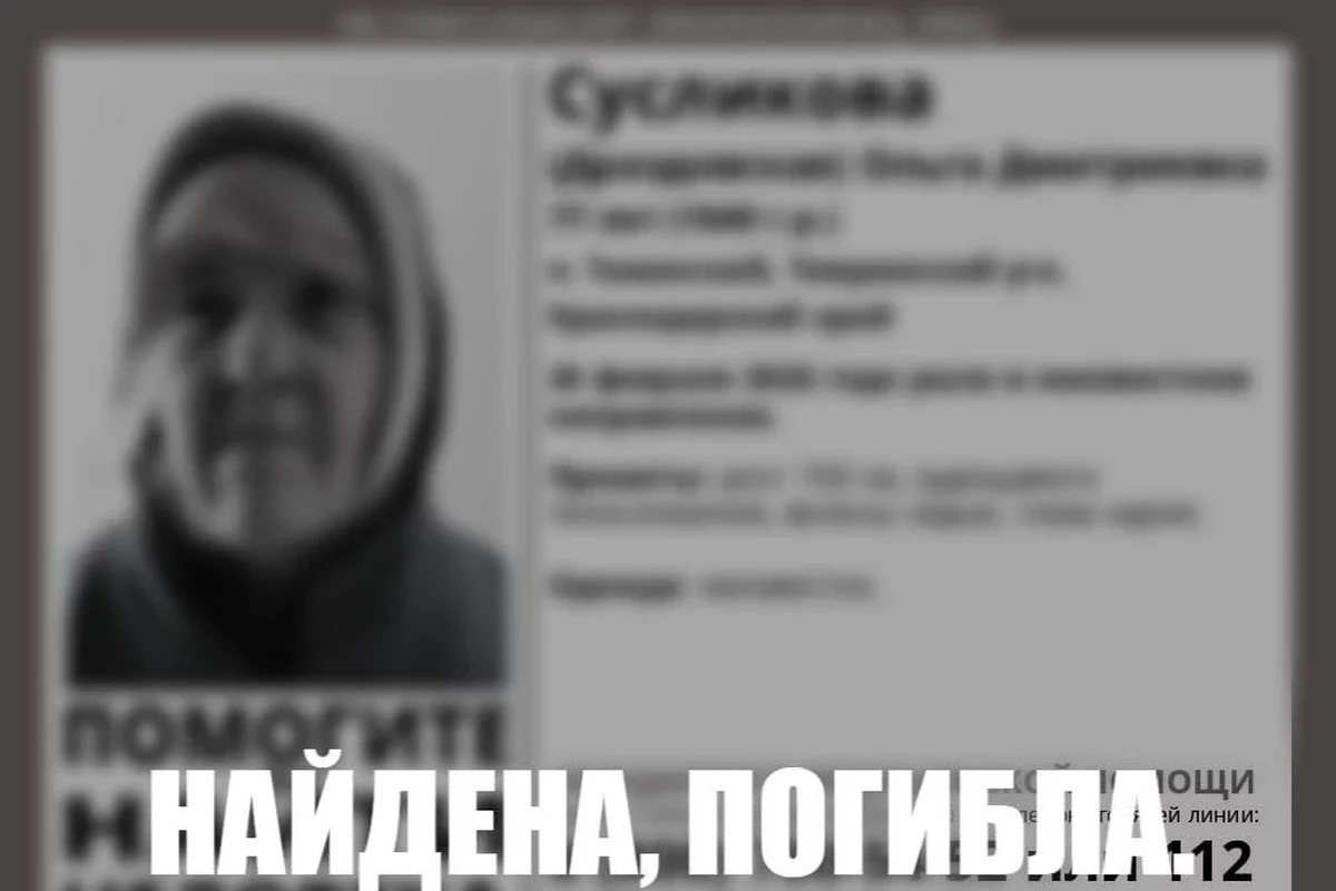 «Найдена, погибла. Искренние соболезнования родным и близким», — написали в Telegram-канале «ЛизаАлерт» вечером 4 марта.