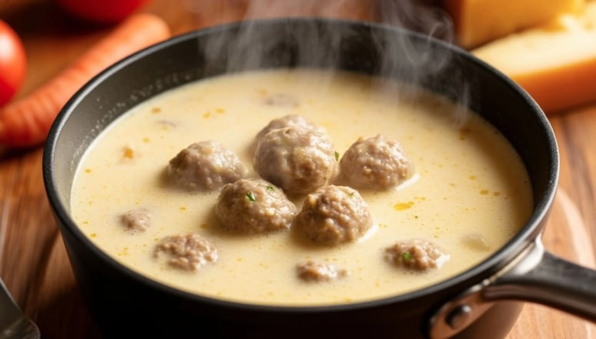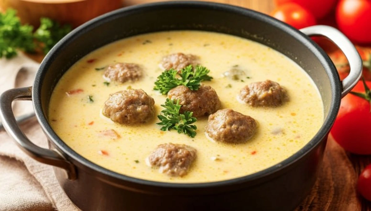 Простой и вкусный сырный сливочный суп с фрикадельками
