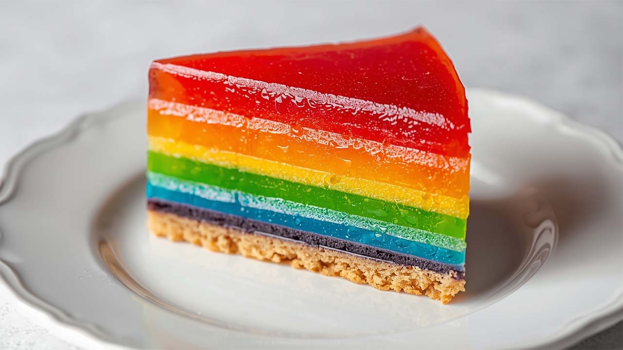 Разноцветный желейный торт «Радуга»