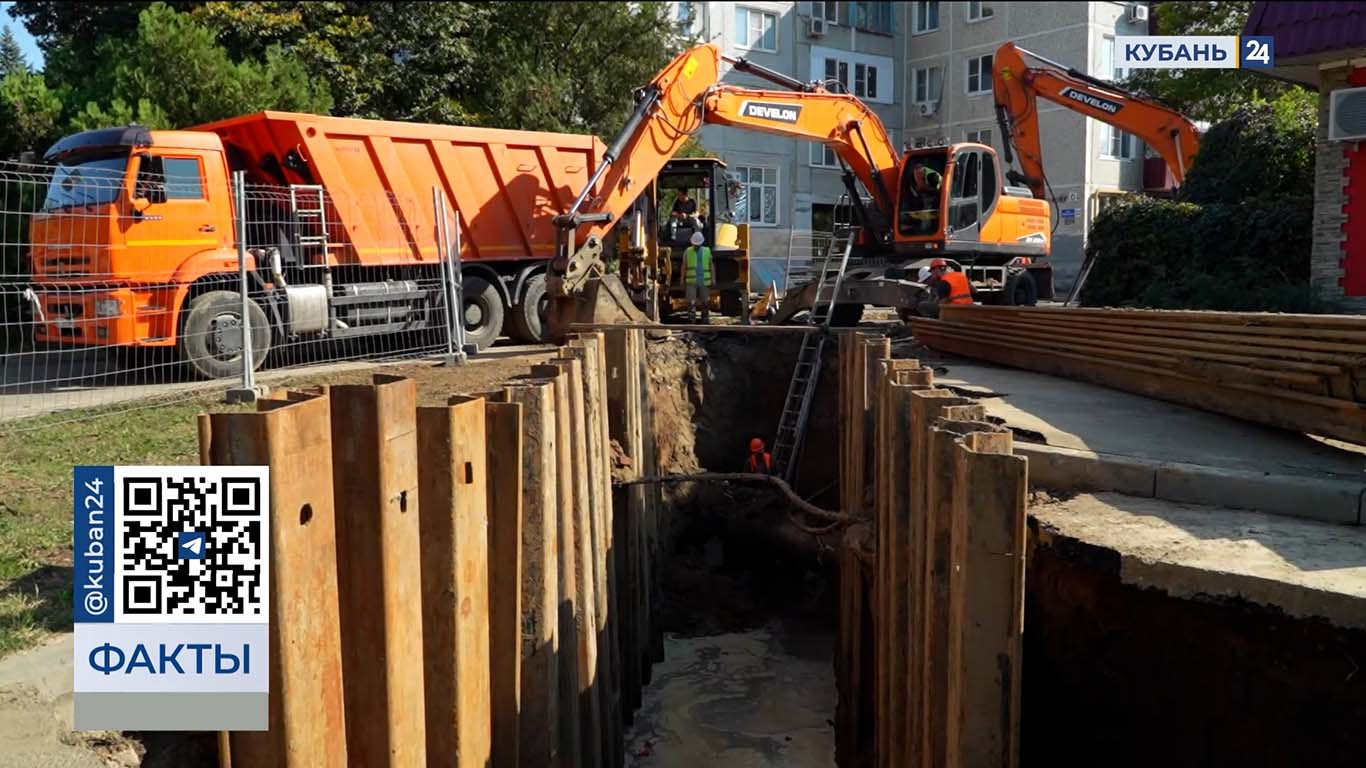 «Краснодар Водоканал» меняет старый железобетонный коллектор на новый, более долговечный — пластиковый. Уже заменили более 550 м трубы и построили 14 колодцев. Осталось переложить 77 м трубы и обустроить 5 колодцев.