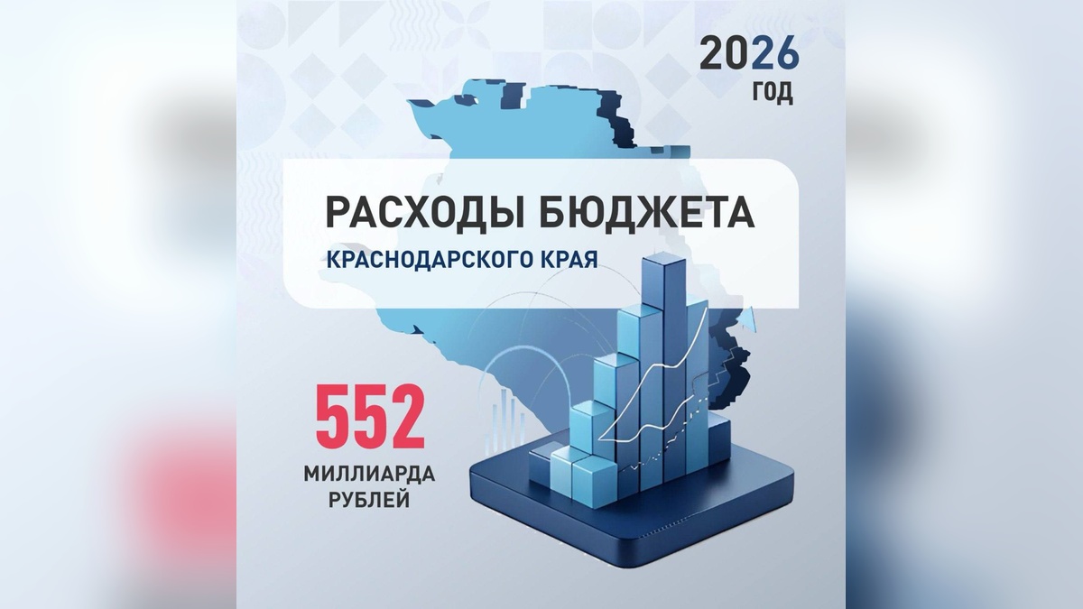 Расходы бюджета Краснодарского края в 2026 году составят 552 млрд рублей