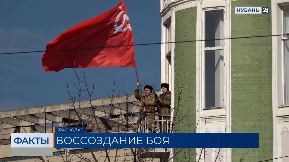 «Кульминация праздника, ради которой собрались сотни горожан. Водрузили победный стяг над центром Краснодара, как и 83 года назад. Историческую справедливость восстановили на том же самом месте на пересечении улиц Красной и Гимназической», ― сообщает специальный корреспондент телеканала «Кубань 24» Николай Тихий.