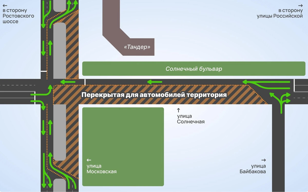 С 1 января частично перекроют движение на Московской и Солнечной в Краснодаре