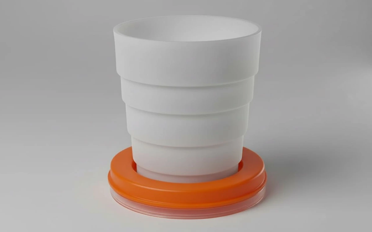 Гениальный в своей простоте и портативности многосегментный стакан из пластика. Он «гармошкой» складывался в плоский диск и раскладывался в полноценную двухсотграммовую емкость.