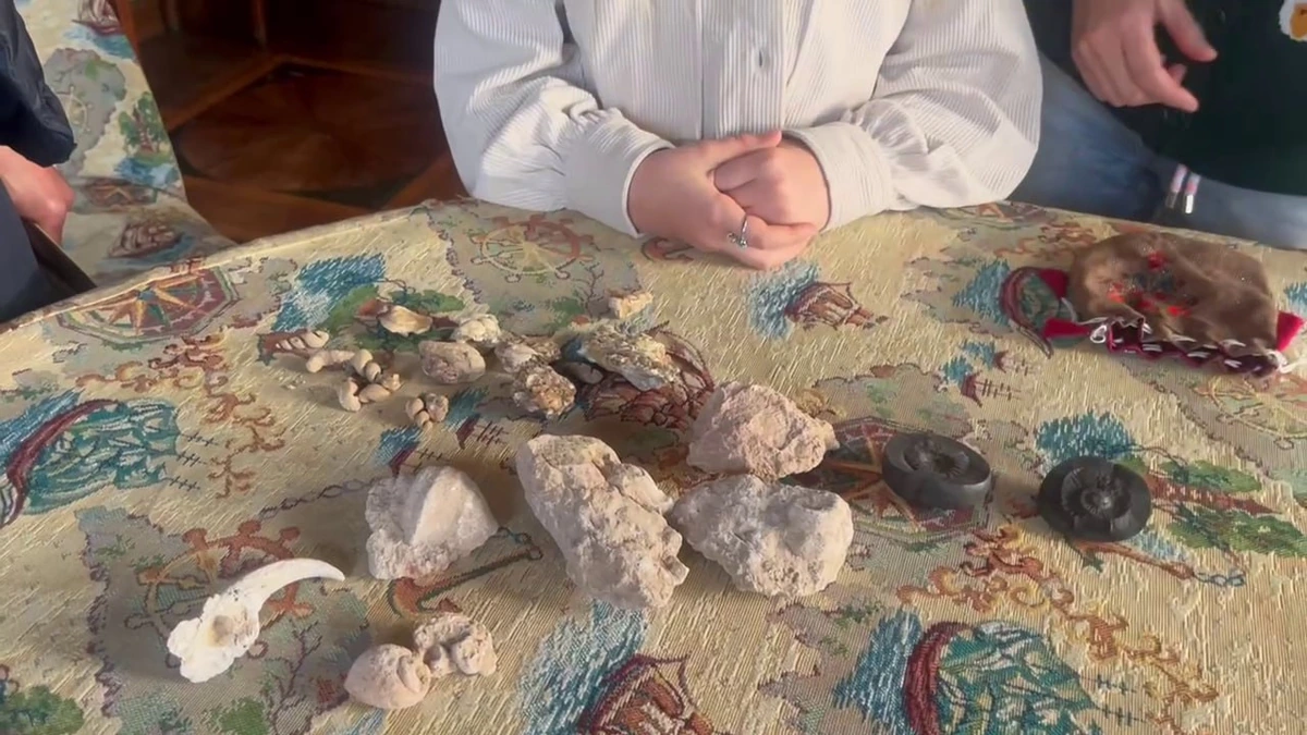 Школьница София Петренко привезла окаменевшие раковины древних головоногих моллюсков из своих поездок с родителями в Непал и Арабские Эмираты.