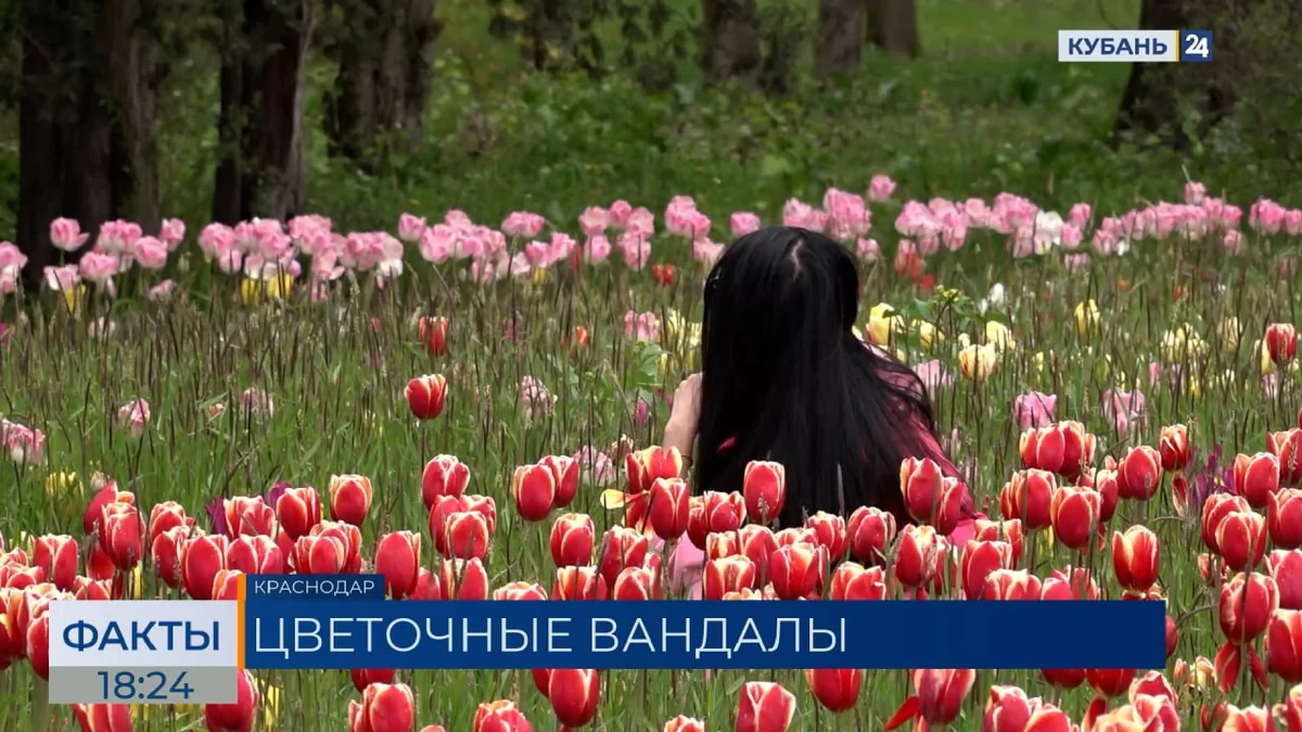 «Такое количество тюльпанов напоминает настоящее море, некоторые посетители, видимо, решили окунуться в него с головой. Об этом говорят вытоптанные тропы, ведущие к центру поляны», ― сообщает корреспондент телеканала «Кубань 24» Максим Шабалда.