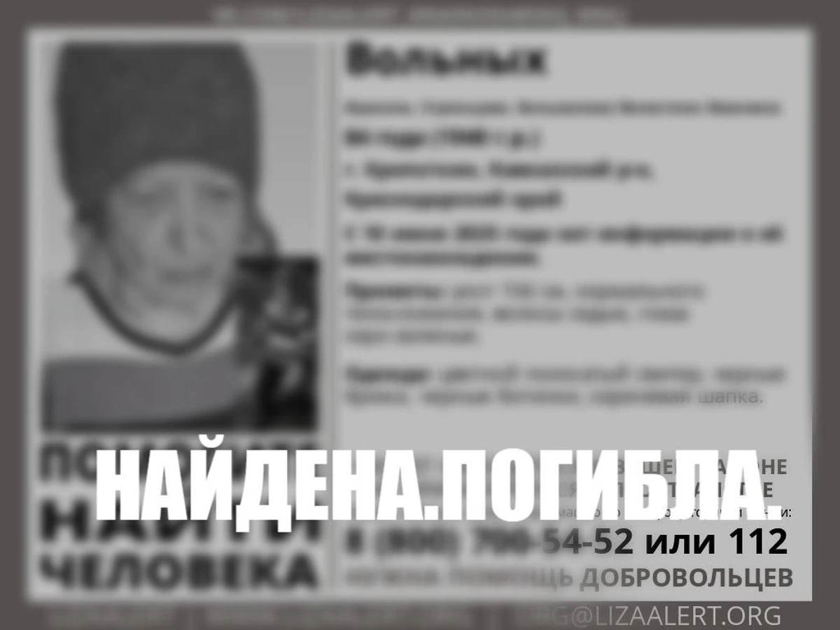 На Кубани нашли мертвой пенсионерку, пропавшую в июне прошлого года