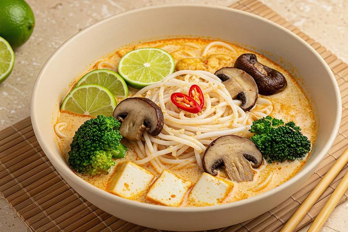 Это такой азиатский пряный суп лапшой и кокосовым молоком. Аутентичный супчик лакса — очень острый. Прямо-таки огонь. Но мы соблюдая традиции, добавим согревающие специи по своему вкусу. Экзотические ноты сохраним, но «пожара» не допустим.