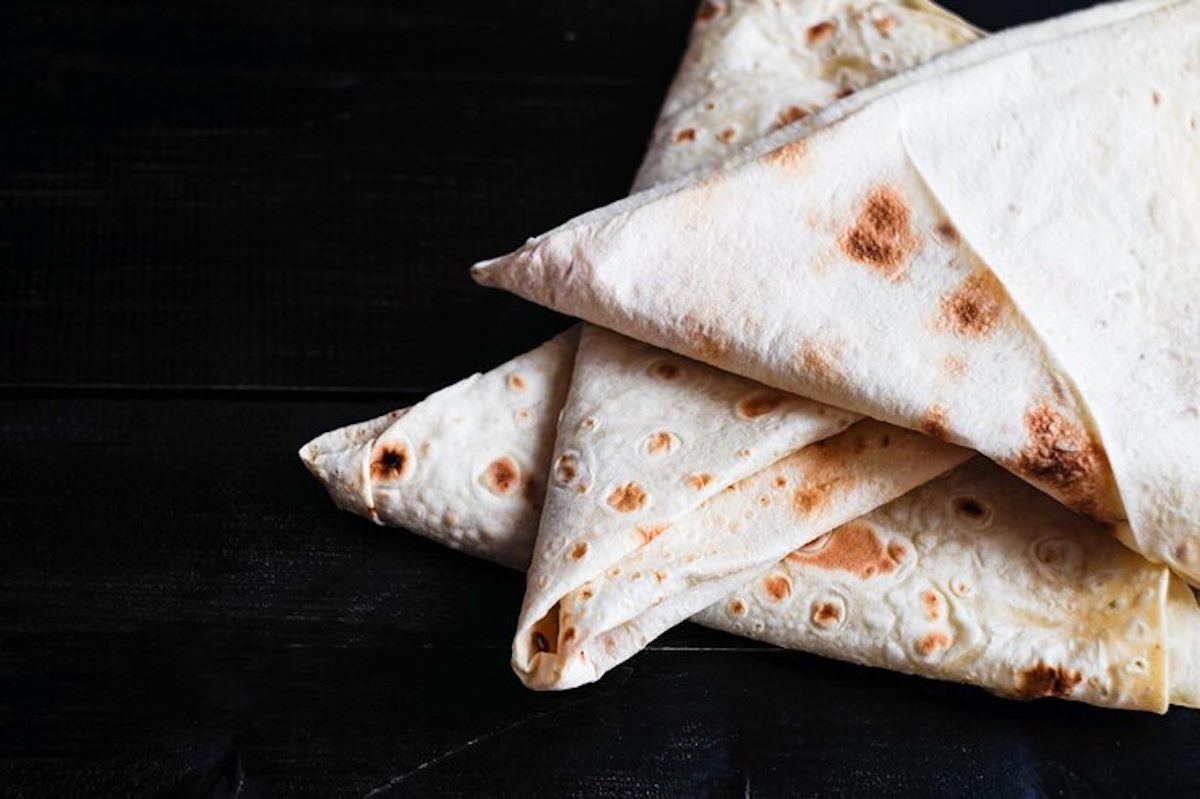 Расстилаем на столе лаваш и разрезаем его на полосы шириной примерно 9 см. Кладем начинку на один край и заворачиваем уголком (как страницу в книге). Потом получившийся треугольник поместите на свободную часть лаваша, закрывая начинку еще с одной стороны. Продолжайте тем же образом складывать оригами из лаваша до тех пор, пока вся начинка не «спрячется», а полоска — не закончится. Повторите с остальными полосками.