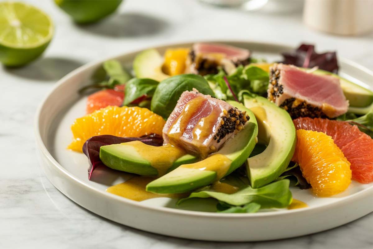 Салат с тунцом, авокадо и цитрусовой заправкой