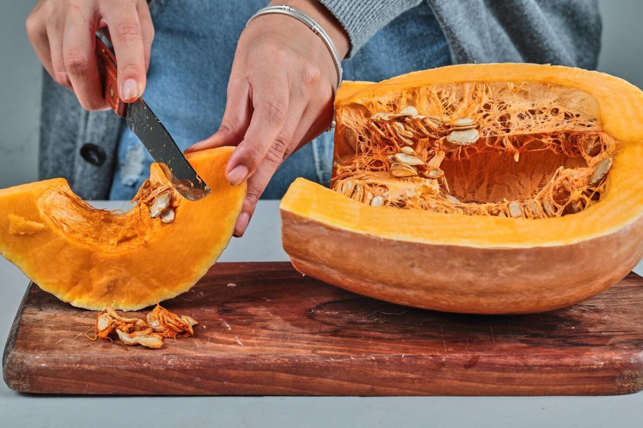 Избавляем тыкву от кожуры и семян и режем крупными кубиками. Дальше делаем с ней что захотим: запекаем в духовке, присыпав сахаром и корицей, или отвариваем, пробиваем блендером и получаем основу для тыквенного сока, пюре или крем-супа. Наслаждаясь вкусом, помним о пользе тыквы для сердца и пищеварения.