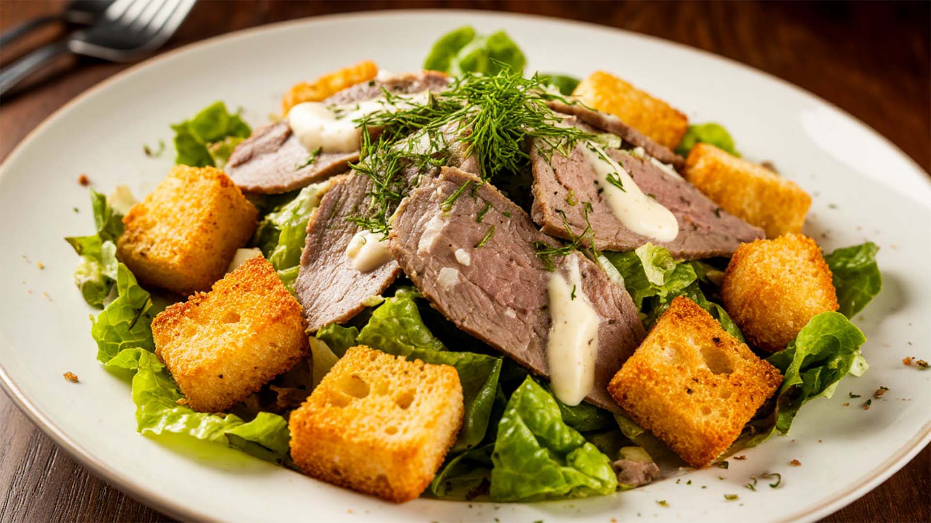 Это у нас будет интерпретация популярного салата. Сытная и изысканная.