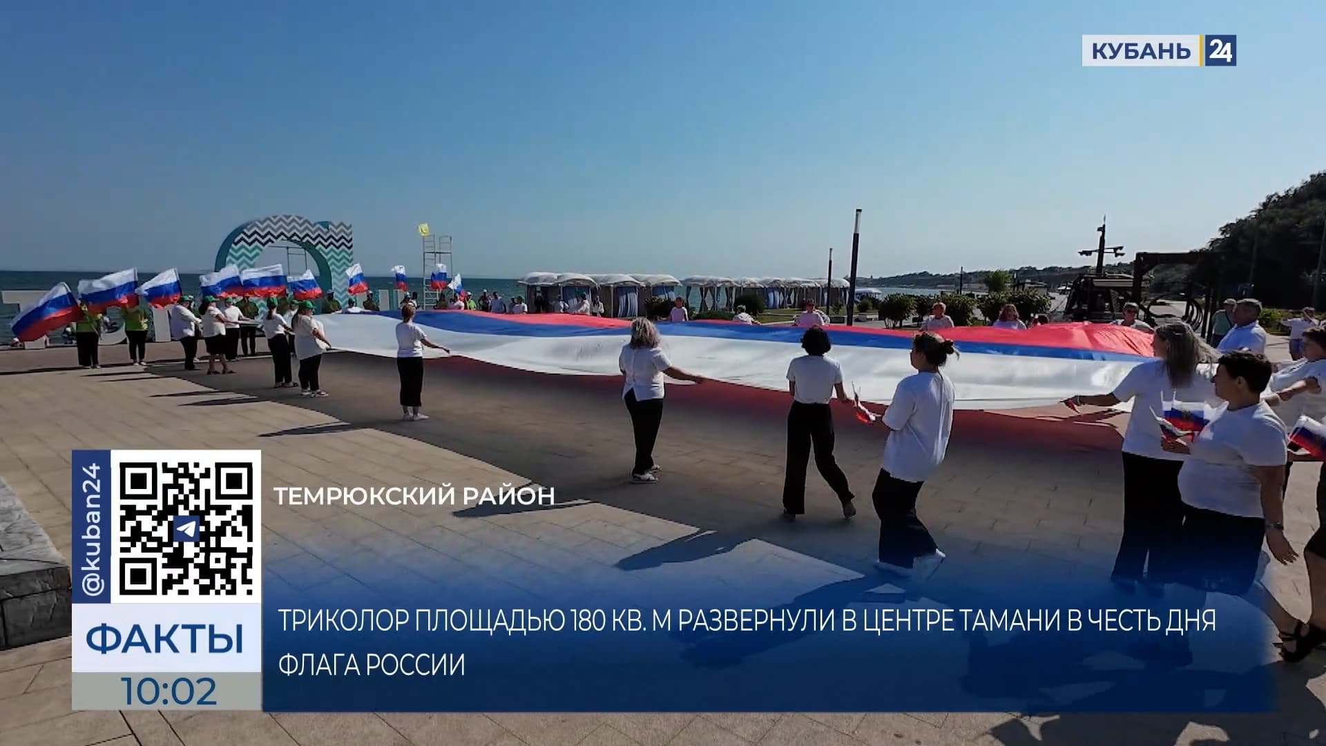 Триколор площадью 180 кв. метров развернули в центре станицы Тамань. Народная инициатива объединила сотрудников темрюкского пункта новороссийского филиала «Центра оценки качества и безопасности продукции АПК», их семьи, друзей и местных жителей. Идея сшить полотно появилась спонтанно.